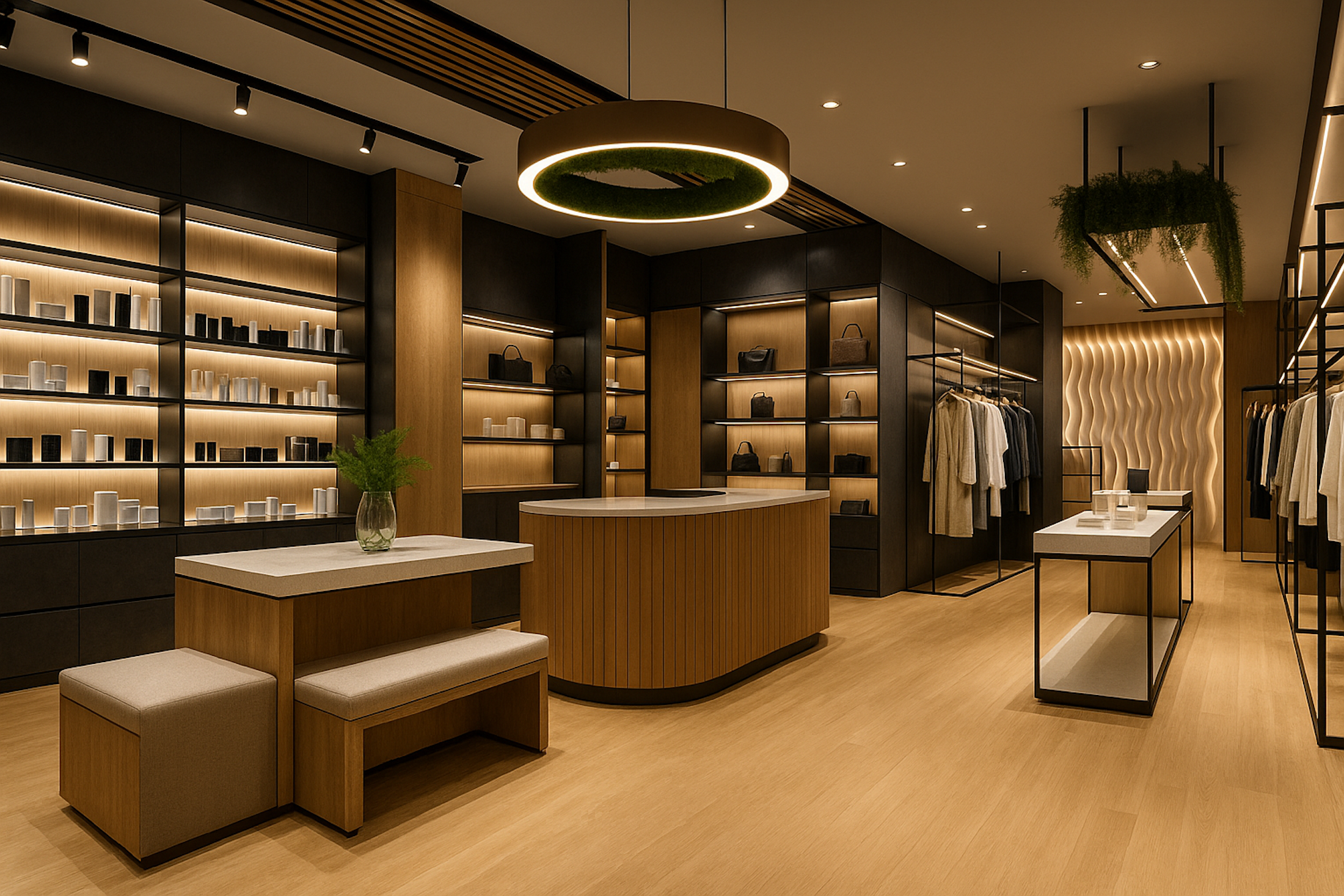 Soluciones exclusivas en madera, Krion y metal con iluminación integrada para hoteles, retail, oficinas y espacios de alto nivel
